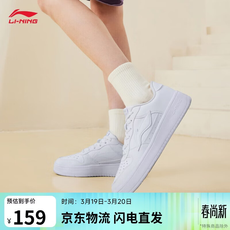 李宁板鞋女鞋低帮厚底增高百搭透气小白鞋滑板鞋耐磨运动休闲鞋 【浮舟】标准白/粉杏色420-6 38